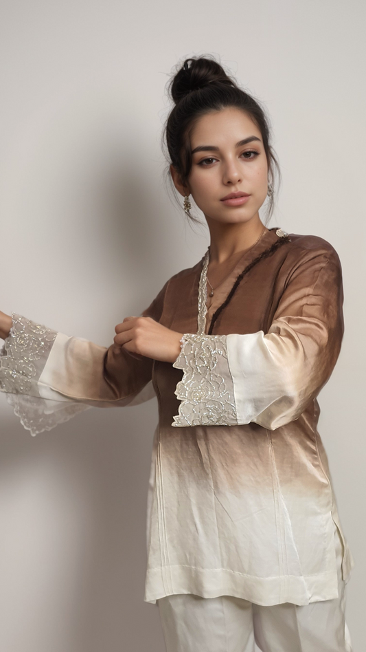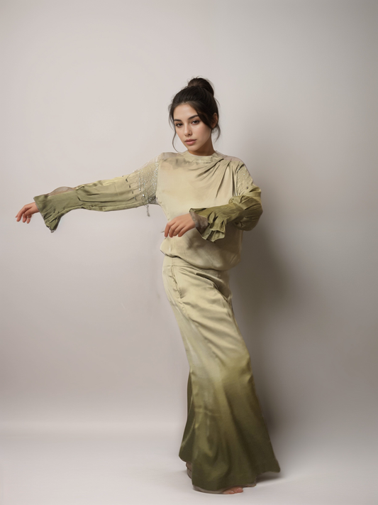 Discover the perfect blend of tradition and modernity with Ethereal Fusion—where Ombre hues meet exquisite hand embroidery.
